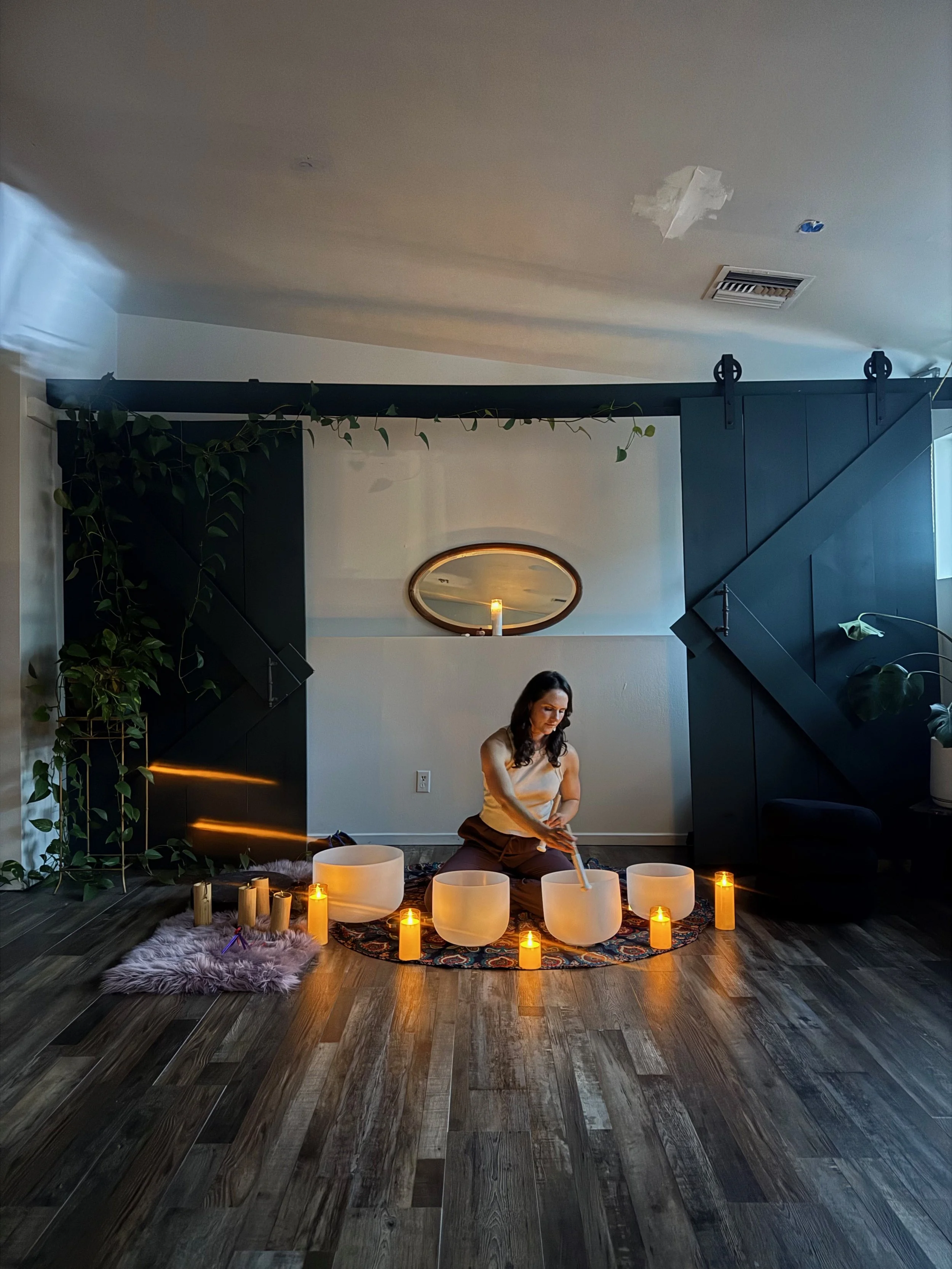 Come unwind with me in a cozy group setting. These weekly sessions combine gentle meditation with soothing sound to help you release stress, reset your energy, and just be for a while. No experience needed—come as you are.